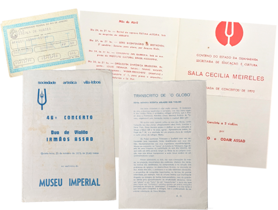 No entanto, a faculdade, localizada no centro do Rio, ficava distante de Campo Grande e sua rotina já era intensa: estudos e ensaios com Odair, as aulas com Monina e uma agenda crescente de concertos organizada por Herzog. Conciliar todas essas demandas logo se mostrou inviável. Sérgio chegou a trancar e retomar o curso algumas vezes, completando quatro dos sete anos exigidos, mas o avanço da carreira do Duo e a necessidade de manter o foco no repertório tornou claro que não seria possível seguir simultaneamente com a faculdade.