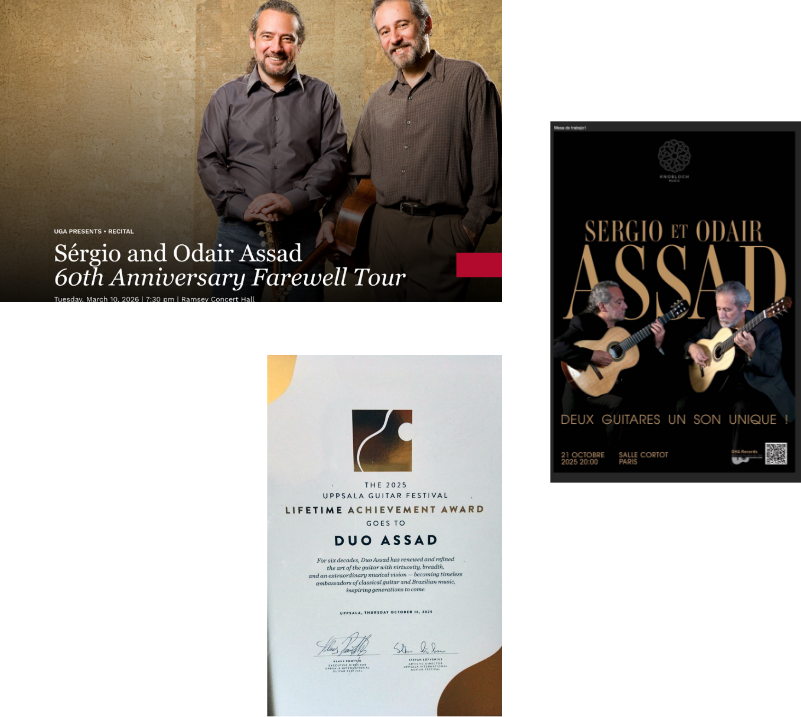 A turnê começou oficialmente em 2025, com apresentações no Brasil, Japão e Europa — todas com ingressos esgotados e plateias que se colocaram de pé antes mesmo da primeira nota, em reverência à trajetória extraordinária dos dois violonistas que, vindos de um berço simples, transformaram-se em referências absolutas e ajudaram a redefinir os rumos do violão no cenário mundial. Um legado construído com autenticidade, excelência, sensibilidade e amor.